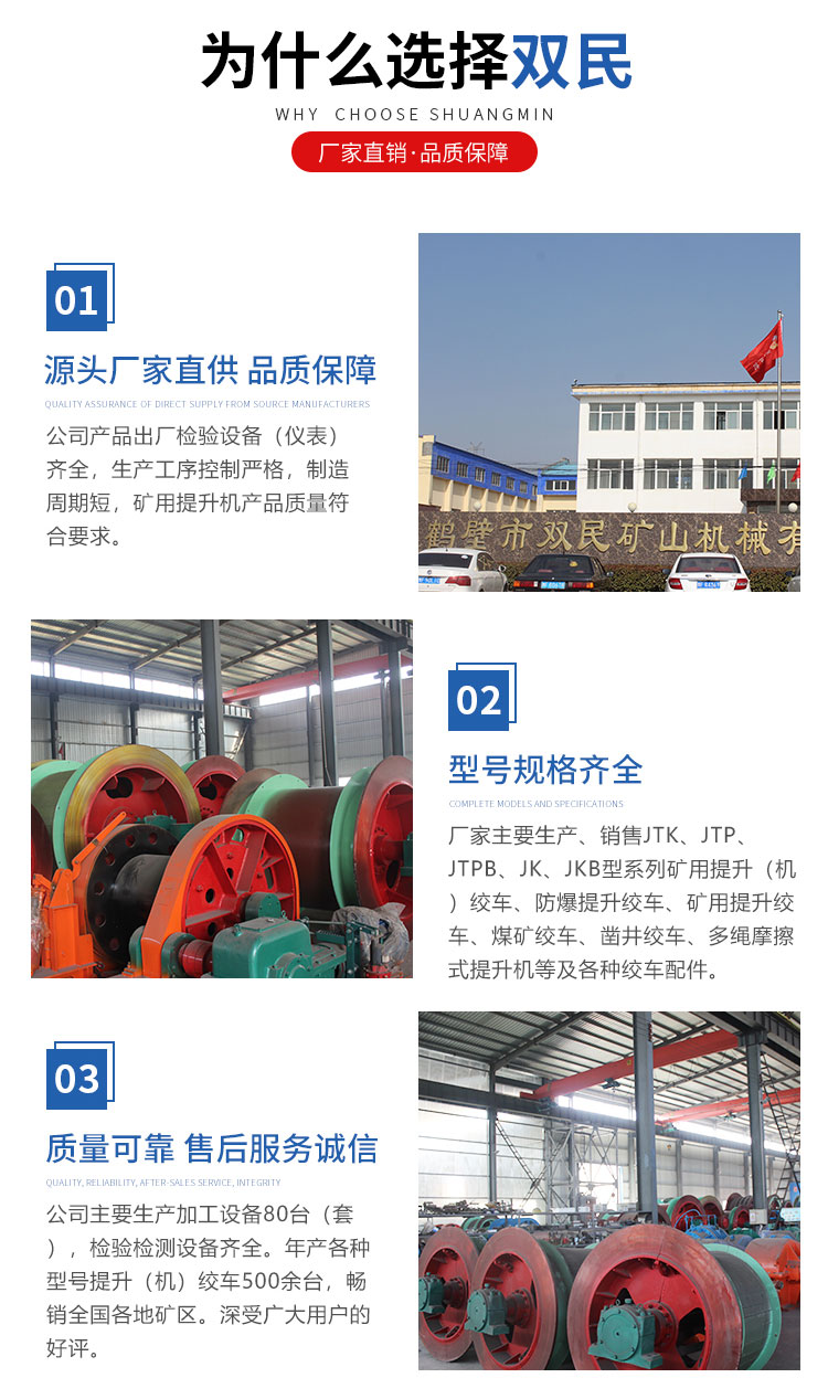 穩(wěn)車又叫做穩(wěn)盤絞車、鑿井絞車,是煤礦井下常用的提升設(shè)備。JZ系列鑿井絞車主要用于煤礦、金屬礦、非金屬礦豎井井筒掘進時懸吊吊盤,水泵,水管,注漿管,鳳筒等掘進設(shè)備和張緊穩(wěn)繩。絞車是根據(jù)井筒掘進時懸吊設(shè)備的工作特點設(shè)計的。僅用于短期工作,而不宜用于吊重物長期運轉(zhuǎn)使用。 我們的礦井提升絞車相對于一般的公司的產(chǎn)品有以下特點: